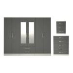 3 Pcs Classic 6 door 2 Drawer Mirrored Wardrobe, Chest And Bedside Set White And Grey