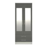 Classic 2 Door 2 Drawer Mirrored Wardrobe White And Grey
