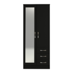 Classic 2 Door 3 Drawer Combi Mirrored Wardrobe Black