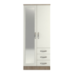 Classic 2 Door 3 Drawer Combi Mirrored Wardrobe Oak And White