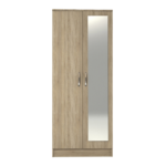 Classic clean minimalistic design. 2 door mirrored wardrobe in oak giving you plenty of storage space. Wardrobe comes on castors for easy transportation. Inside you will find 1 full width shelf and a metal hanging rail. Wardrobe comes with 1 large mirror on the right side. Strong construction brings you real value.