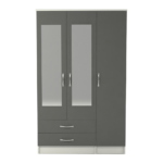 Classic 3 Door 2 Drawer Mirrored Wardrobe White And Grey