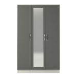 Classic clean minimalistic design. 3 door wardrobe with a long mirror on the middle door in white and grey. Giving you a fair use of your storage. Wardrobe is supplied assembled. It comes in 2 sections as a single and a double part. This setting allows items to be taken in the room of choice assembled. Each section will have a top shelf and a hanging rail. Wardrobe comes on castors for easy transportation. Strong construction brings you real value.
