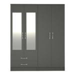 Classic 4 Door 2 Drawer Mirrored Wardrobe Grey