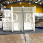 Classic clean minimalistic design. Plain 4 door wardrobe in white giving you a fair use of your storage space. Wardrobe is supplied assembled. It comes in 2 sections as two double parts. This setting allows items to be taken in the room of choice assembled. Each part will have a top shelf and a hanging rail. Wardrobe comes on castors for easy transportation. Strong construction brings you real value.